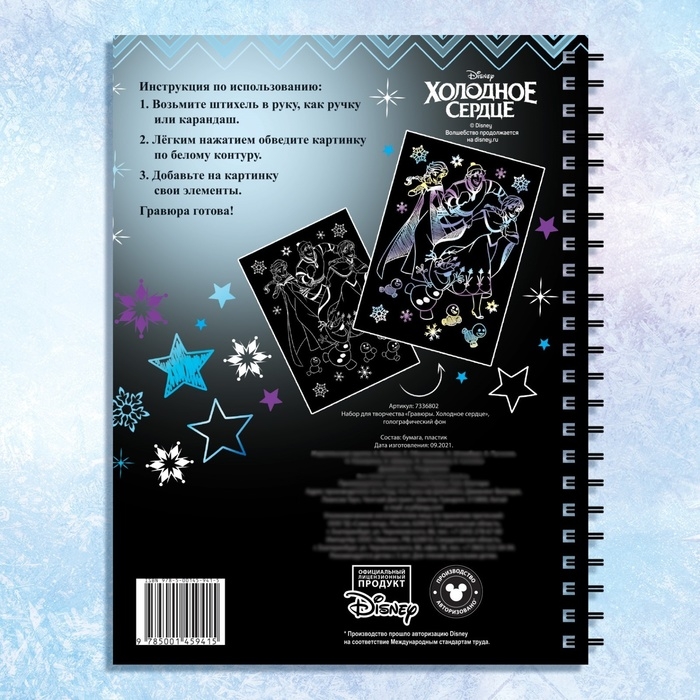 Набор для творчества «Гравюры», голографический фон, 10 гравюр, Холодное сердце