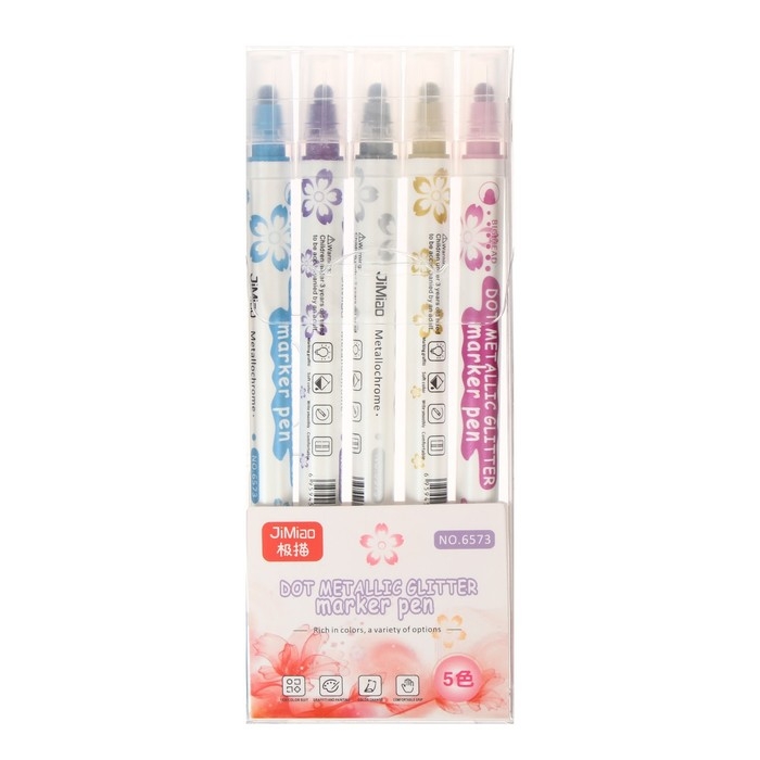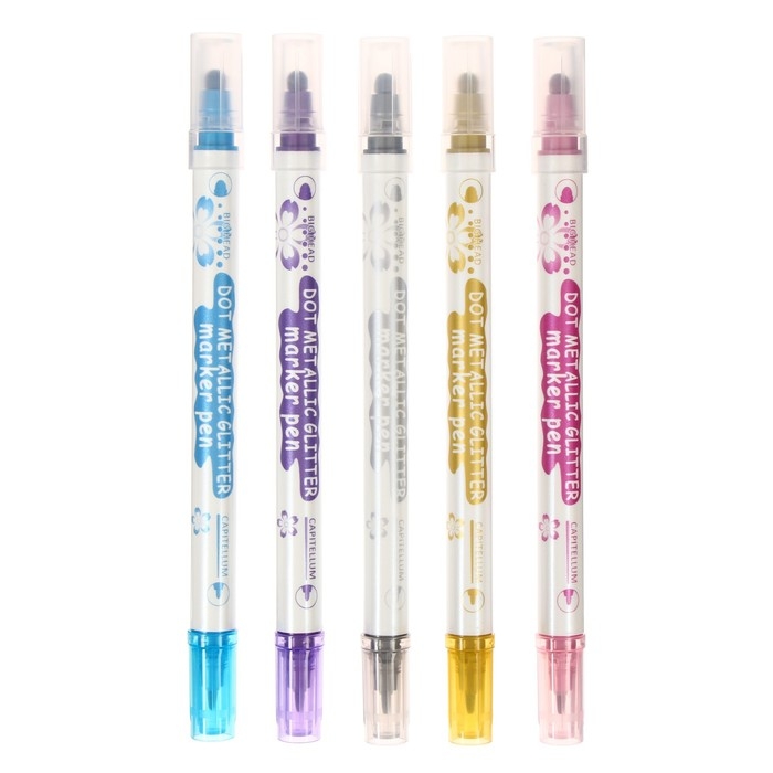 Набор маркеров, двусторонние, цвета металлик, 5 цветов