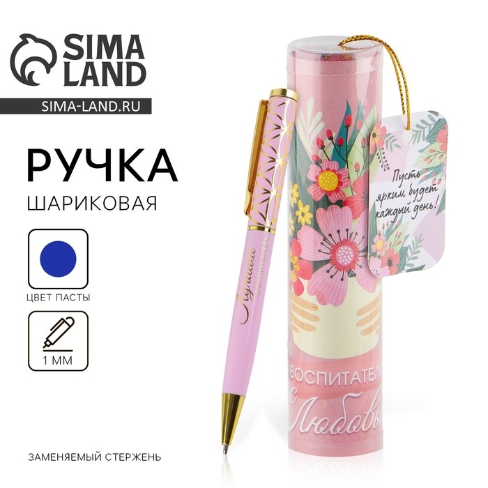 Ручка в тубусе «Любимому воспитателю» пластик, синяя паста, 1.0 мм