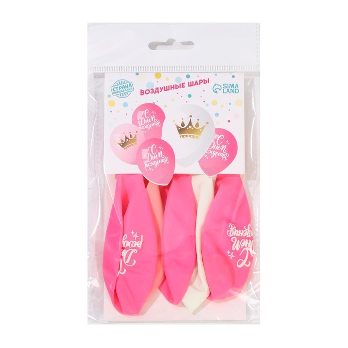 Воздушный шар латексный 12" «С днём рождения», корона, 5 шт.