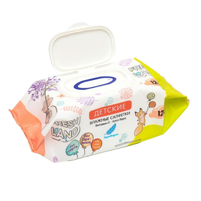 Влажные салфетки для детей "Freshland" с алоэ вера и витамином Е,120 шт