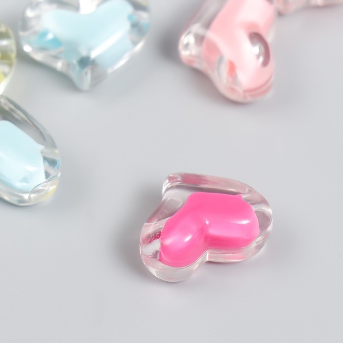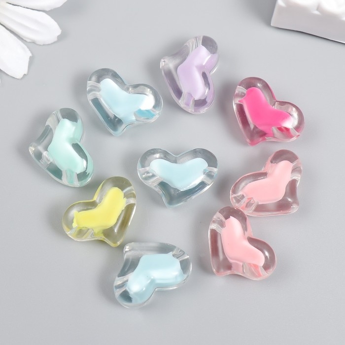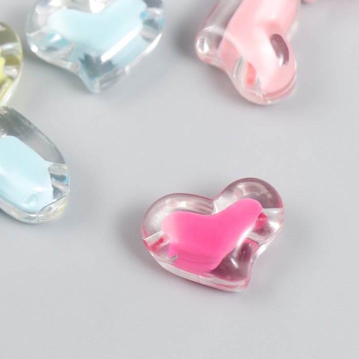 Бусины пластик "Сердца - внутренний цвет ассорти" 20 гр 1,5х2,1 см