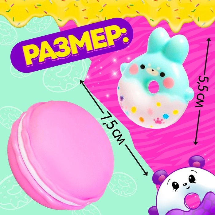 - Игрушка находится в контейнере в форме пирожного, чтобы ребёнку было удобно брать мялку с собой куда угодно.