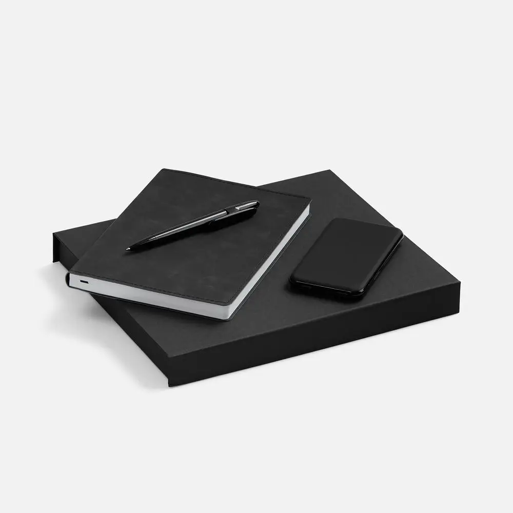 Набор с внешним аккумулятором позволит всегда оставаться на связи, а бессменная офисная классика — ежедневник и ручка —помогут направить энергию в правильное русло!