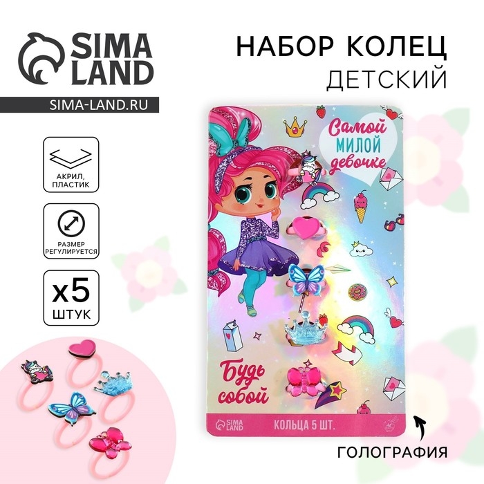 Кольцо «Самой милой девочке», 5 шт, безразмерные