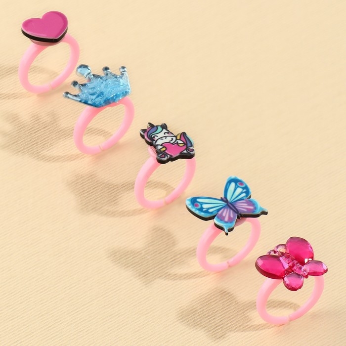 Кольцо детское «Выбражулька» ассорти для девочек, форма МИКС, цвет МИКС, безразмерное