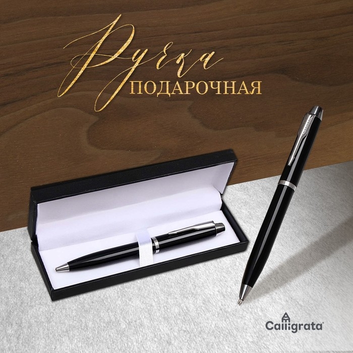 Ручка подарочная перьевая Calligrata, в кожзам футляре ПБ IM, корпус черный с золотом