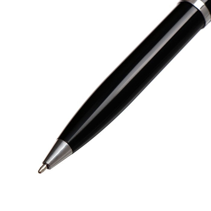Ручка шариковая, подарочная, в пластиковом футляре, поворотная, "Бизнес", чёрная с серебристыми вставками