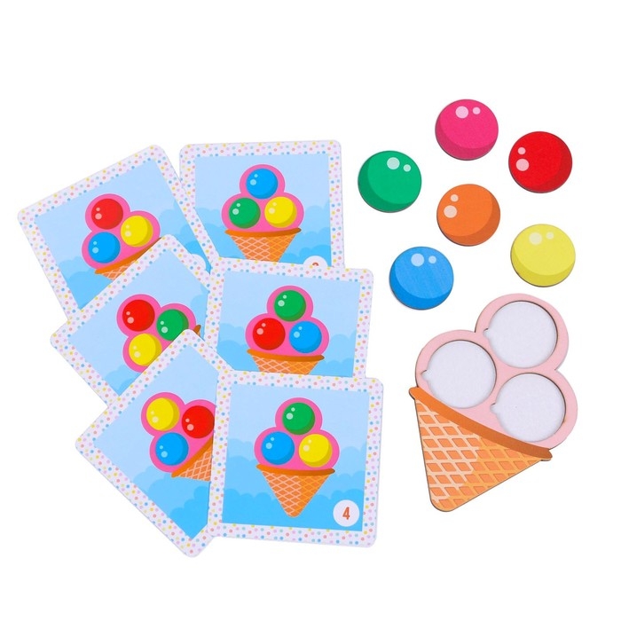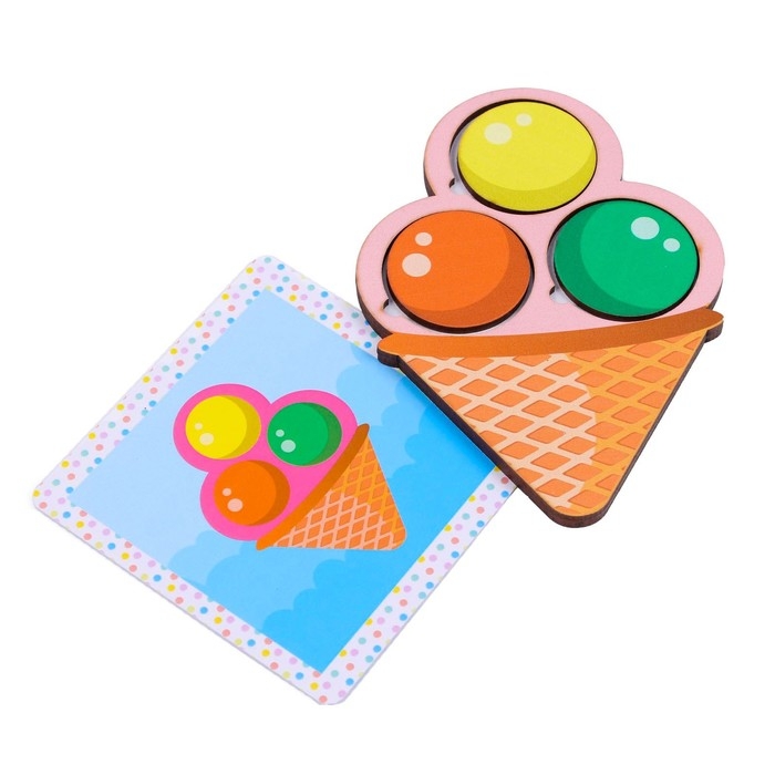 Мозаика «Мороженое» — игра, которая познакомит ребёнка с цветами и формами. Развивает зрительное внимание и восприятие, память, логическое мышление, зрительно-моторную координацию и связную речь.