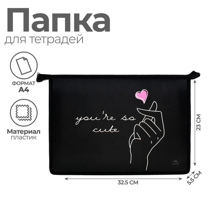 Папка для тетрадей А4, 325 х 230 х 55 мм, молния сверху, пластиковая, ПМ-А4-29 Calligrata "Поцелуй"