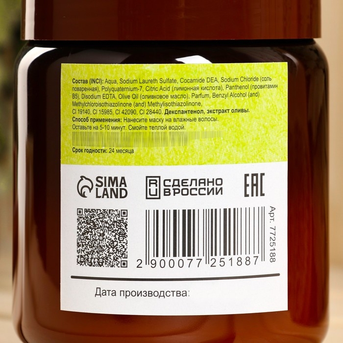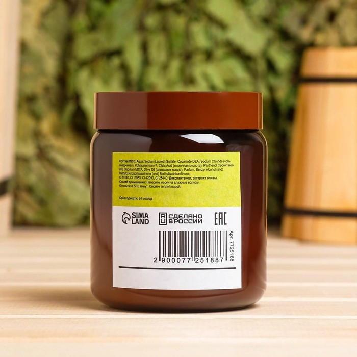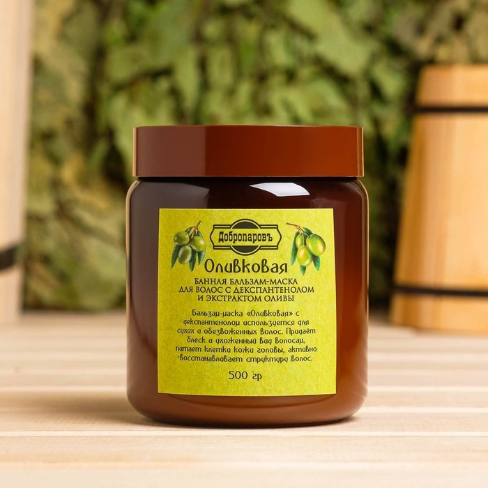 Банная маска для волос натуральная "Оливковая" с Д-пантенолом, 500 г