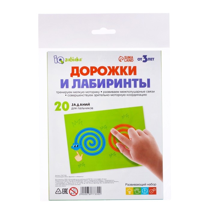 Развивающий набор «Дорожки и лабиринты» поможет малышу потренировать мелкую моторику, зрительно-моторную координацию и межполушарные связи.
