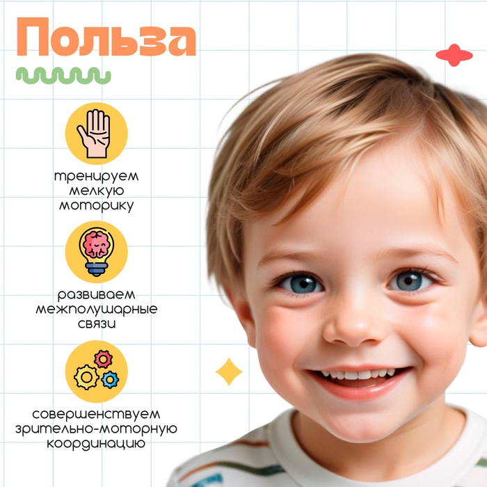 С такой игрой малыш научится выполнять задания двумя руками одновременно, потренирует логическое мышление и внимание и укрепит межполушарные связи.