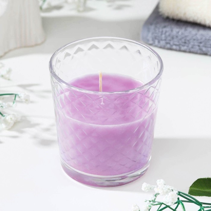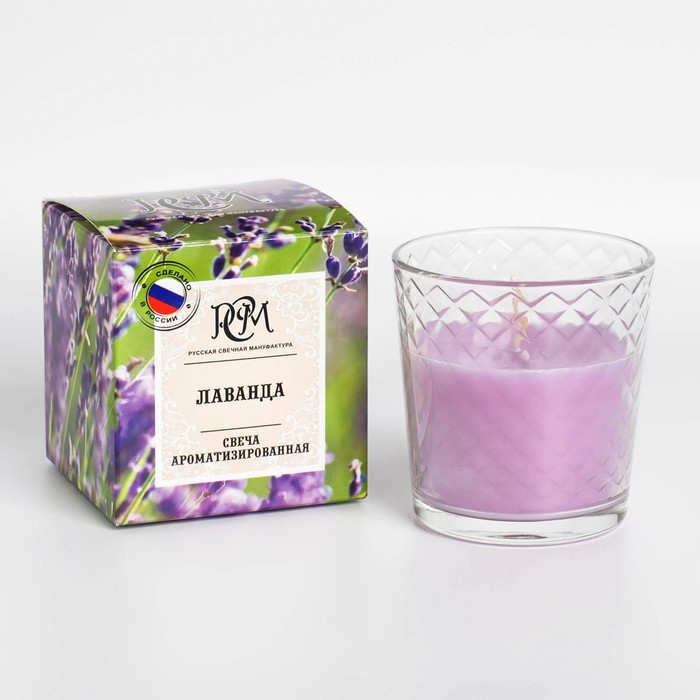 Свеча ароматическая в стакане "Лаванда", подарочная упаковка, 8х8,5 см, 30 ч