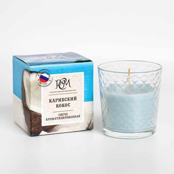 Свеча ароматическая в стакане "Карибский кокос", подарочная упаковка, 8х8,5 см, 30 ч
