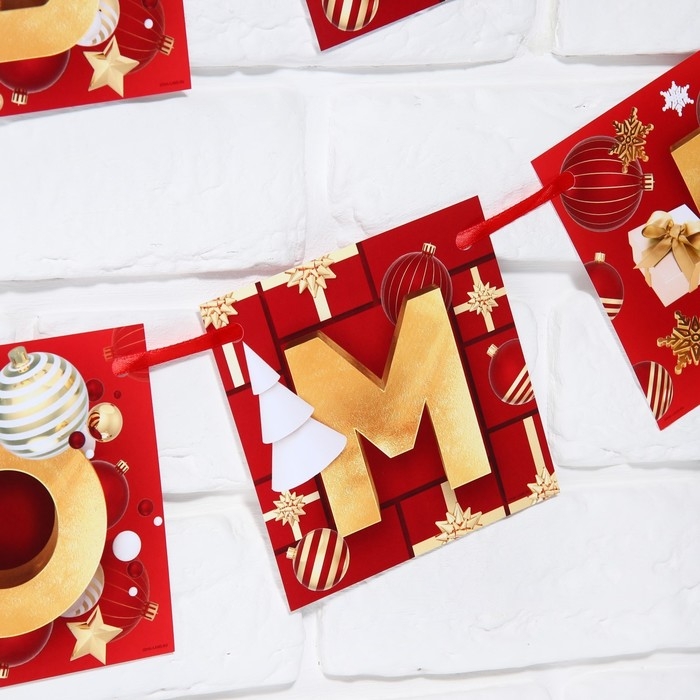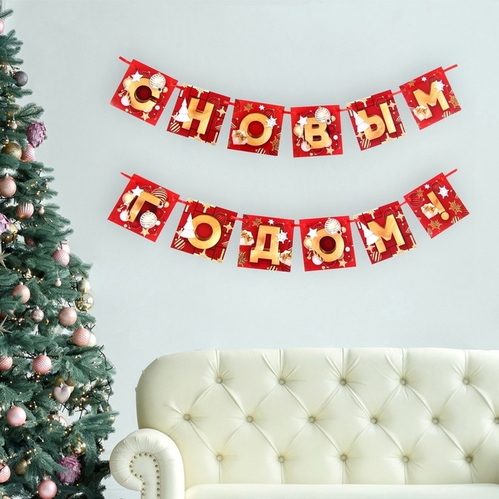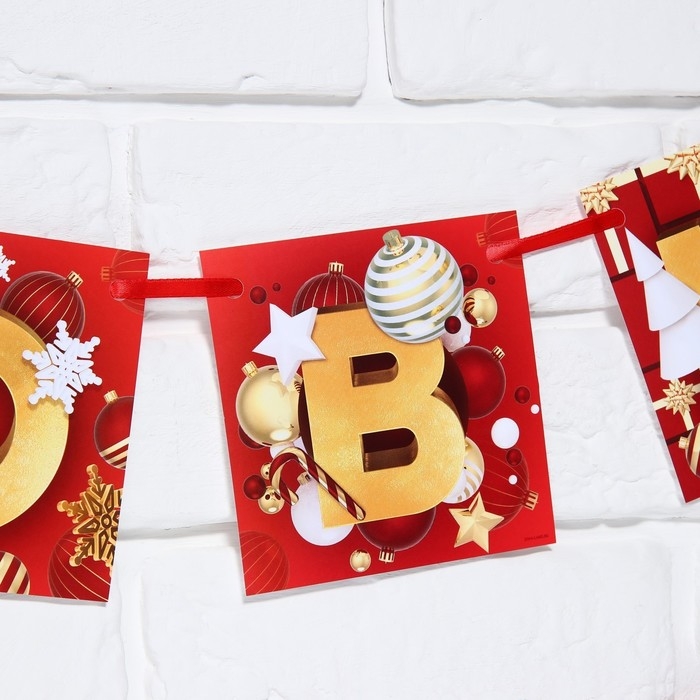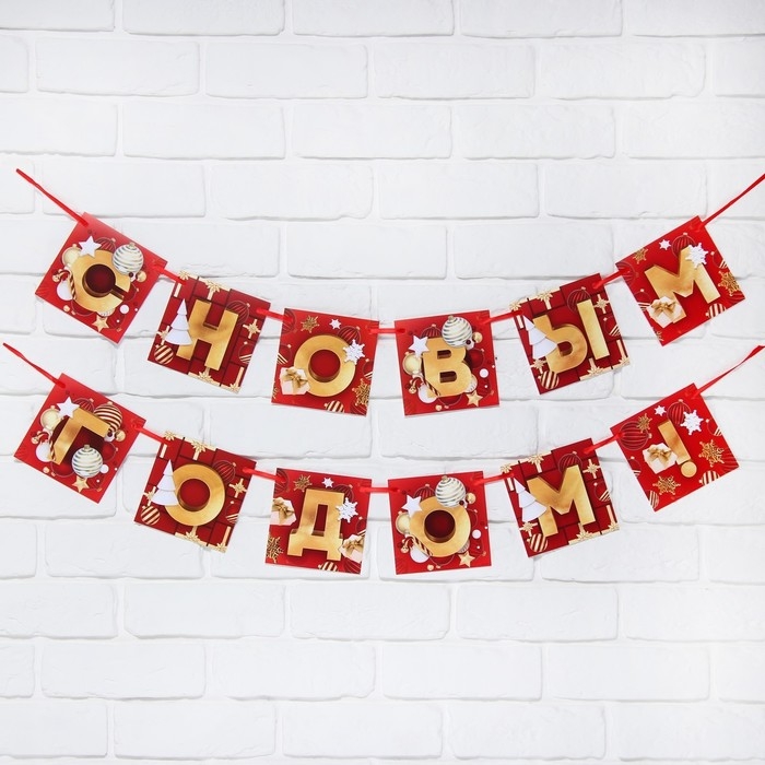 Гирлянда на ленте новогодняя «С Новым годом!», на Новый год, красно-золотая, длина 2 м.
