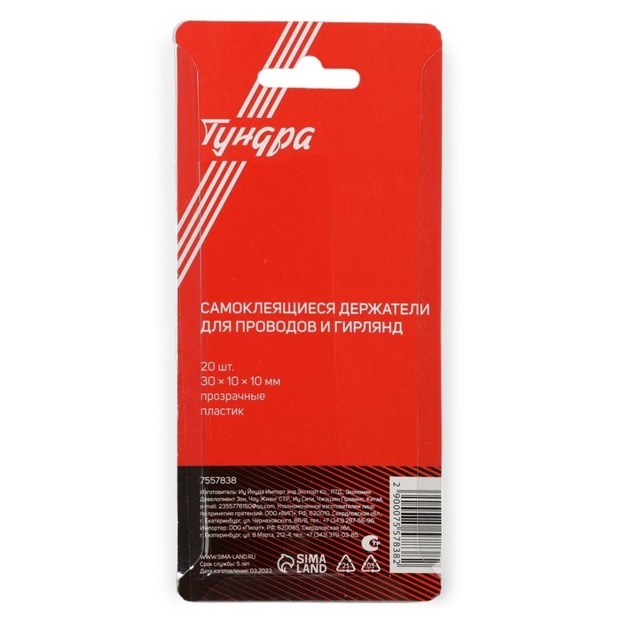Держатель самоклеящийся для проводов и гирлянд ТУНДРА применяется для легкого, надежного и безопасного крепления разнообразных аксессуаров на вертикальной и горизонтальной поверхностях.