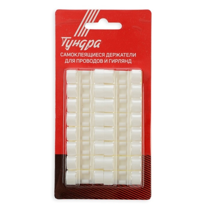 Держатель самоклеящийся для проводов и гирлянд ТУНДРА применяется для легкого, надежного и безопасного крепления разнообразных аксессуаров на вертикальной и горизонтальной поверхностях.
