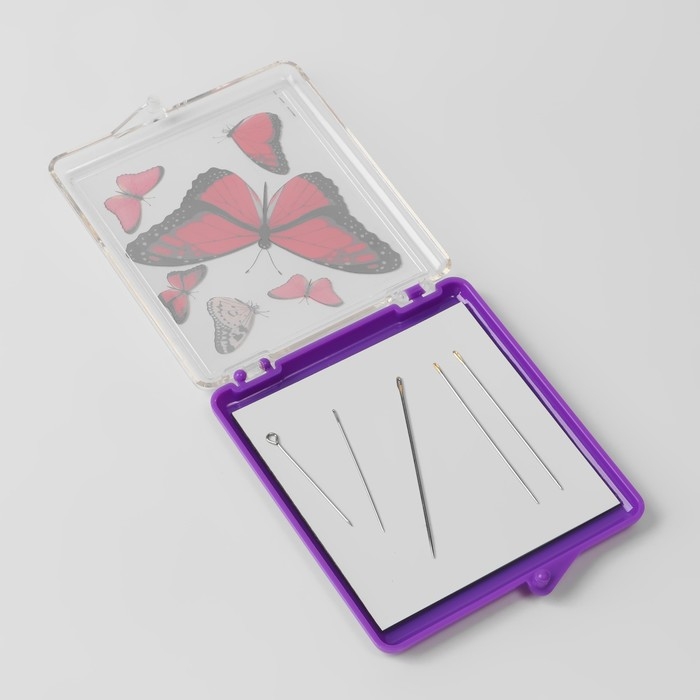 Игольница магнитная «Бабочки», с иглами, 7 × 8 см, цвет фиолетовый