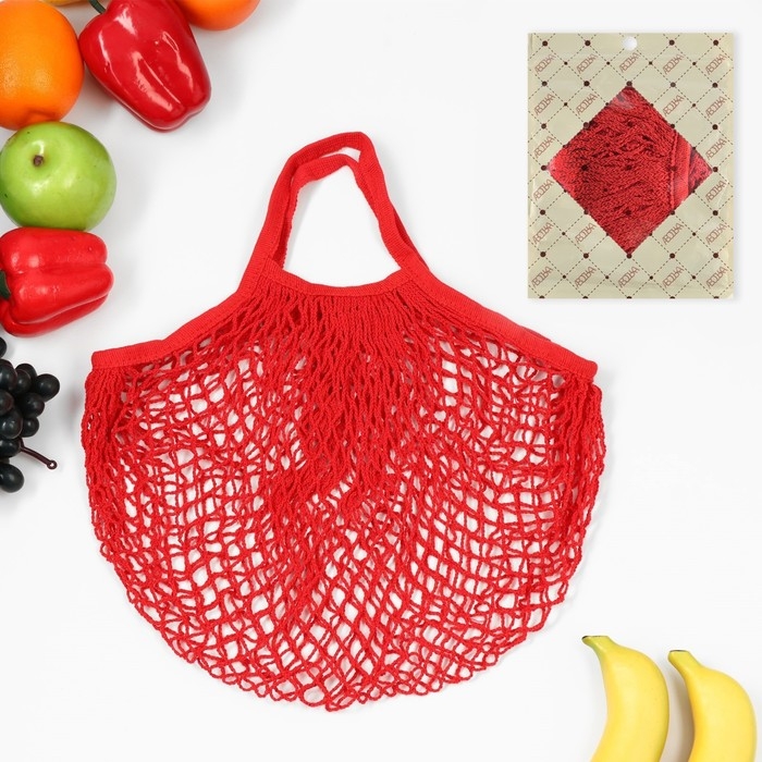 Авоська 37 х 20 см, ручка 12 см, клетка 1.5 см, красная