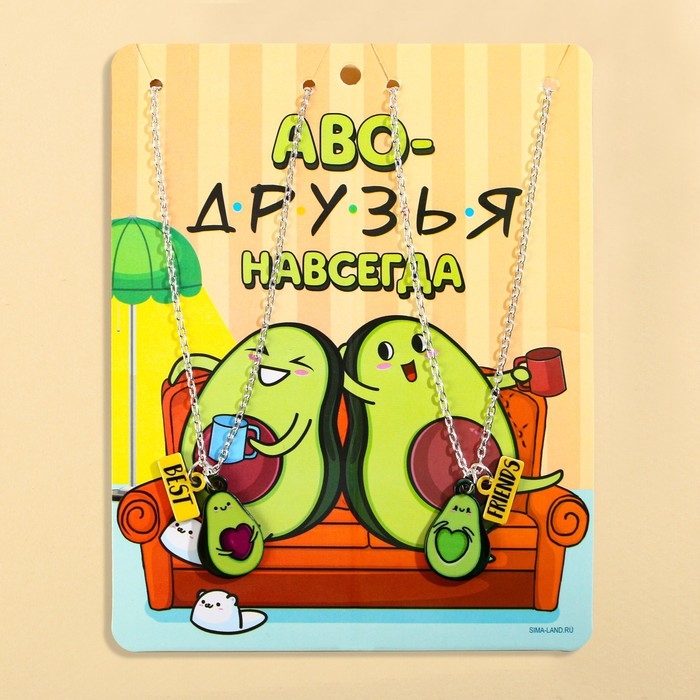 Неразлучники с цепочкой на шею и подвеской в виде авокадо лучшее выражение чувств для подруг, лучших друзей, влюбленных пар, символ крепкой дружбы .
