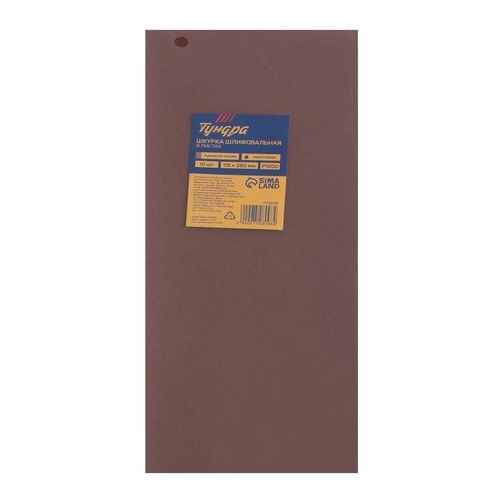 Шкурка шлифовальная в листах ТУНДРА, на бумажной основе водост., 115 х 280, Р1000, 10 шт.