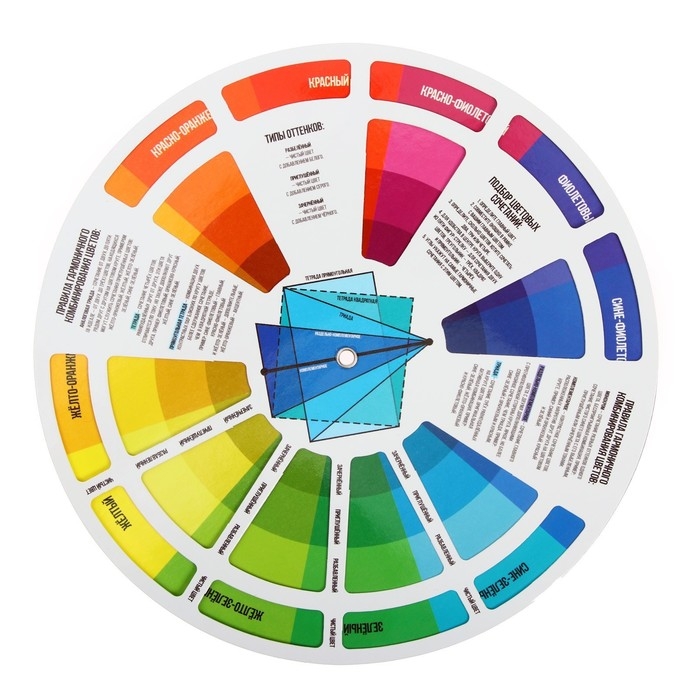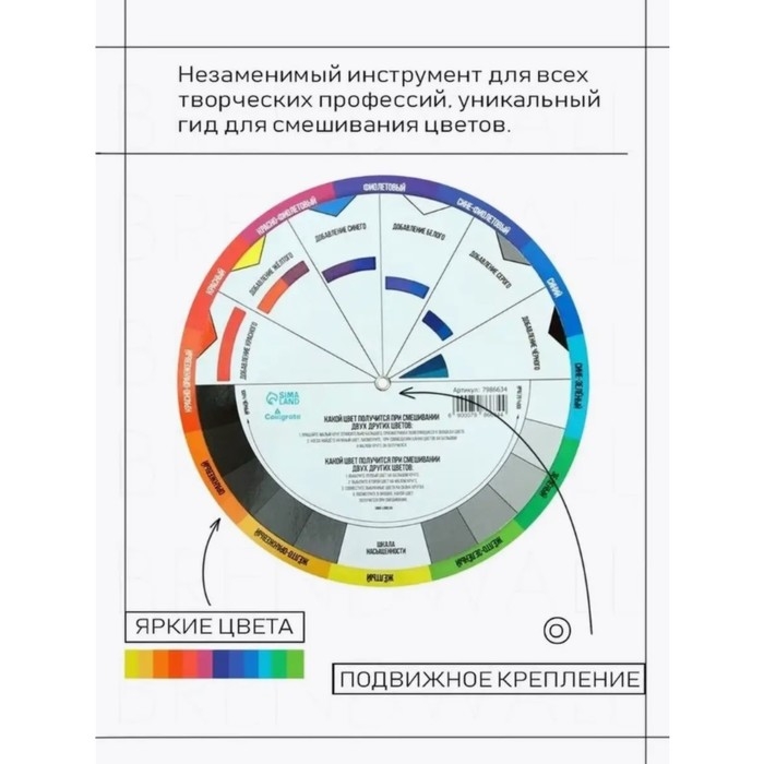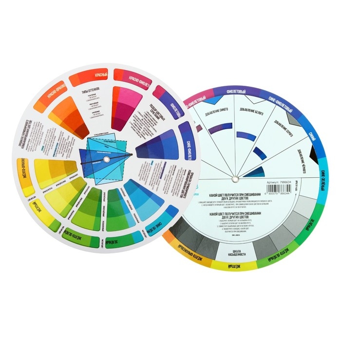 Цветовой круг изготовлен из плотного ламинированного картона и имеет 2 стороны.