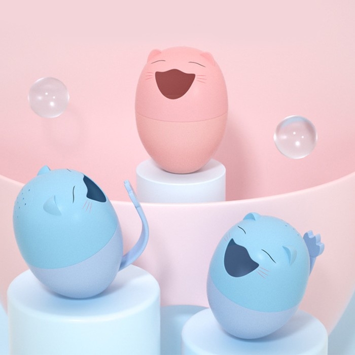 Ковш пластиковый для купания и мытья головы, детский банный ковшик «Котик», 500 мл., с леечкой, цвет голубой