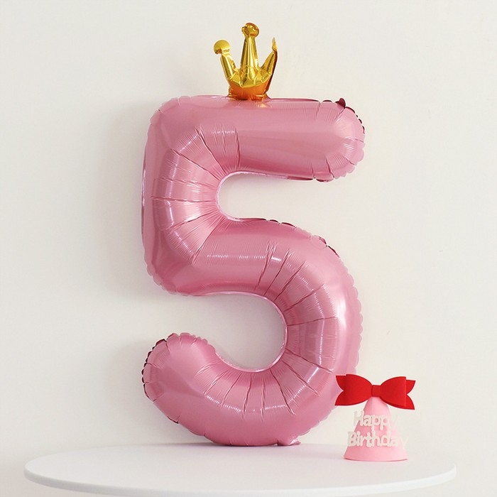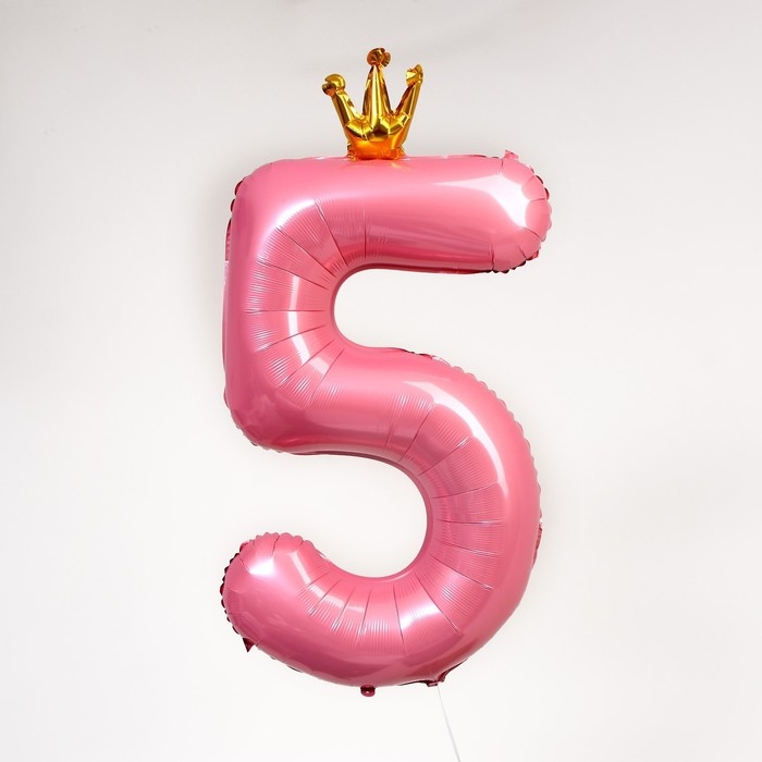 Шар фольгированный 40" «Цифра 5 с короной», цвет розовый