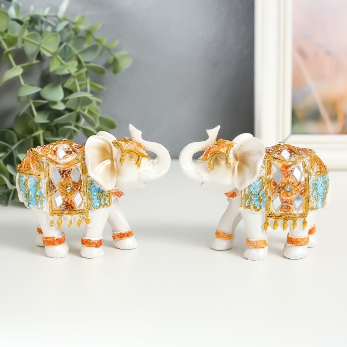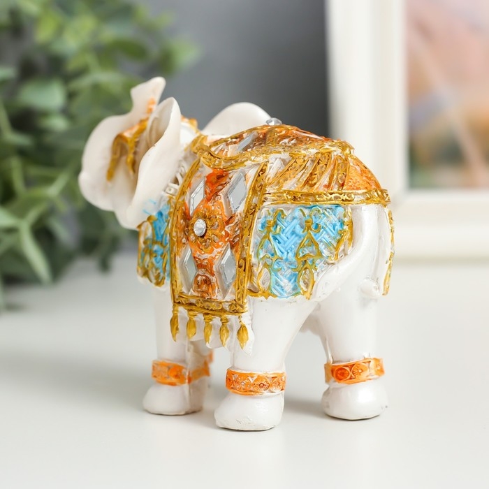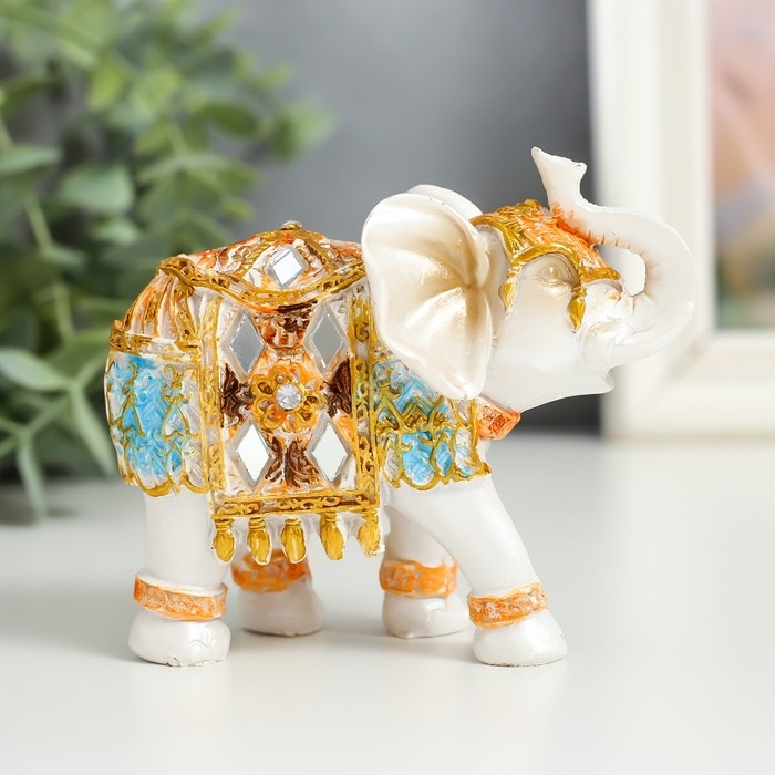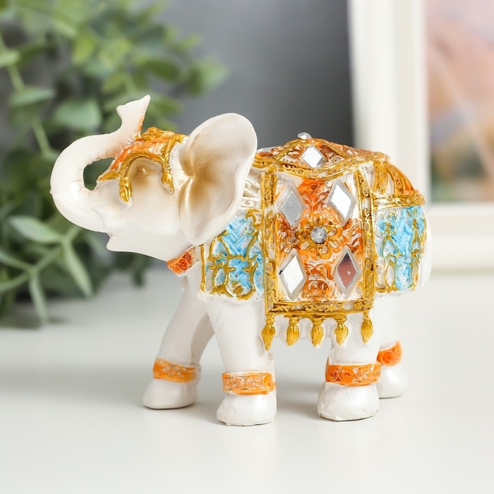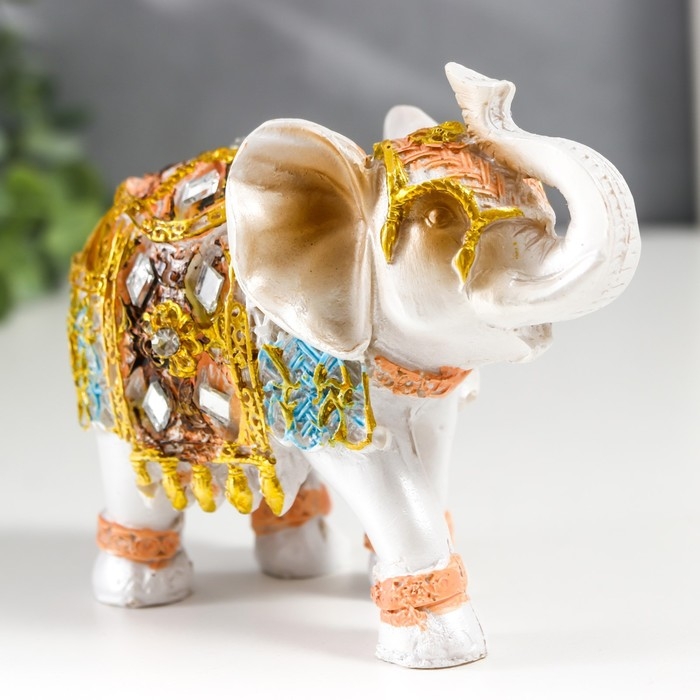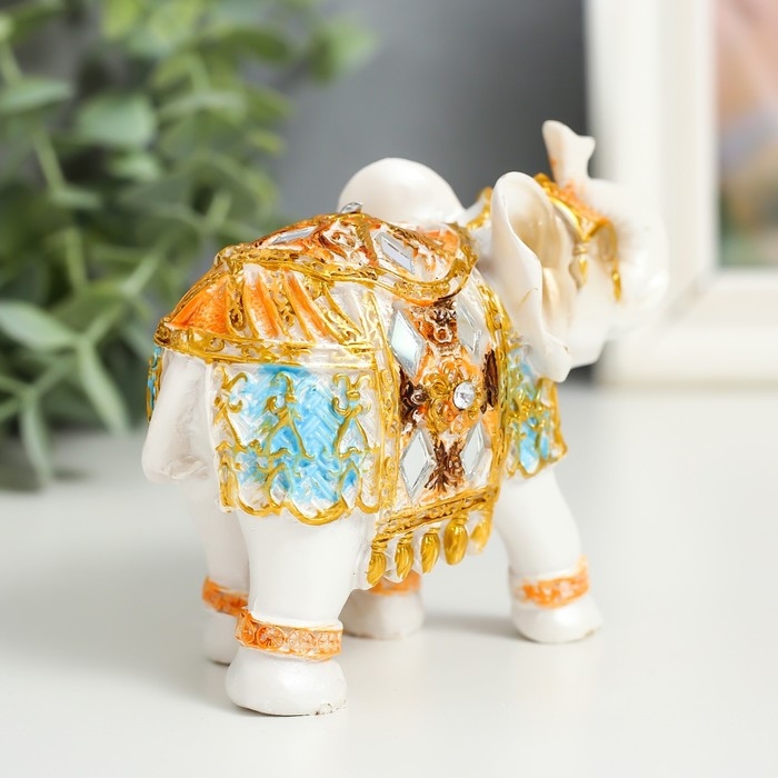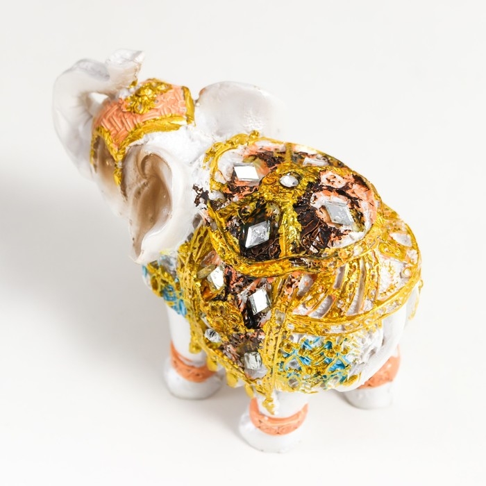 Сувенир полистоун "Белый слон в золотой попоне с синими вставками" МИКС 9,5х5х7 см