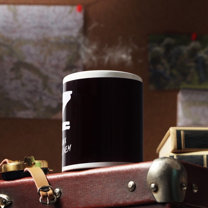 Кружка изготовлена из керамики. Рисунок нанесён методом сублимации, при котором краска проникает в верхний слой изделия, поэтому изображение получается стойким.
