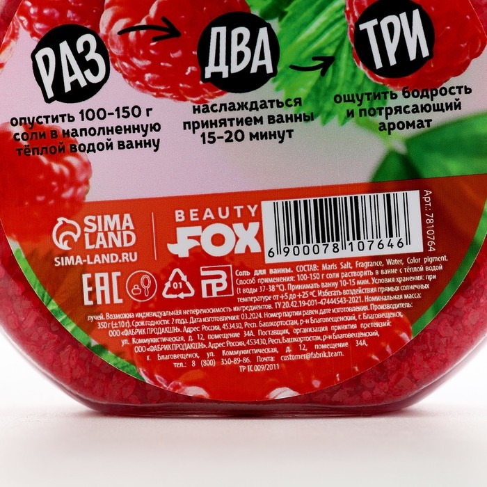 Соль для ванны, 350 г, аромат малины, BEAUTY FOOD