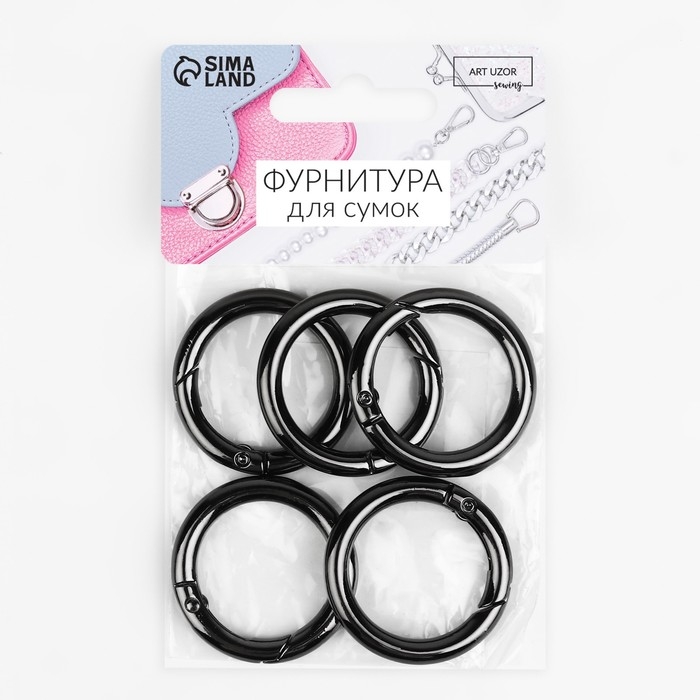 Кольцо-карабин, d = 25/35 мм, толщина - 5 мм, 5 шт, цвет чёрный никель