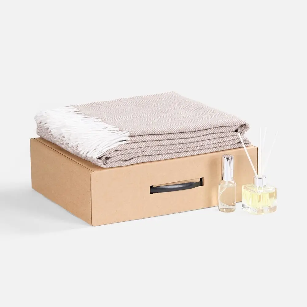 В этом элегантном комплекте — нежный плед с изящным рисунком и стильный ароматический диффузор с палочками, создающий атмосферу уюта и гармонии в любом пространстве. Такой набор — это не просто продукт, а полноценное эмоциональное впечатление: тепло, комфорт и расслабление в одном флаконе. Он идеально подходит для подарков, корпоративных сувениров и сезонных акций.