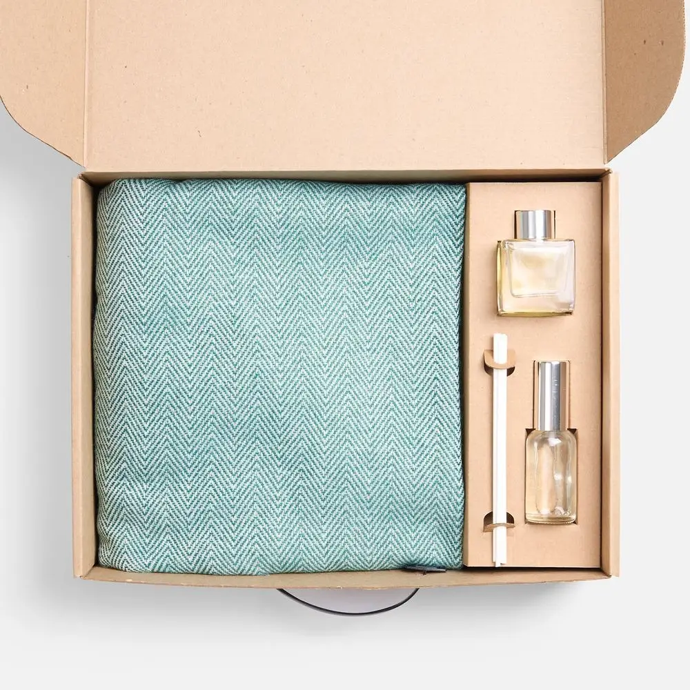 В этом элегантном комплекте — нежный плед с изящным рисунком и стильный ароматический диффузор с палочками, создающий атмосферу уюта и гармонии в любом пространстве. Такой набор — это не просто продукт, а полноценное эмоциональное впечатление: тепло, комфорт и расслабление в одном флаконе. Он идеально подходит для подарков, корпоративных сувениров и сезонных акций.