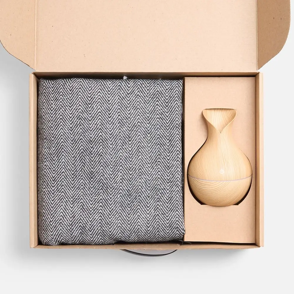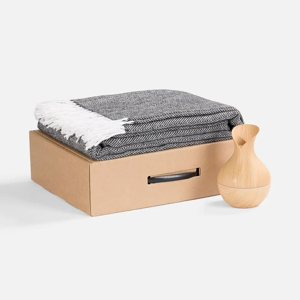 Мягкий плед нежных оттенков подарит тепло и комфорт, а изящный увлажнитель наполнит воздух свежестью и приятным ароматом. Этот набор — гармония красоты и функциональности, которая превращает каждый момент в отдых и восстановление.