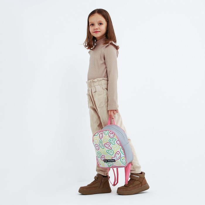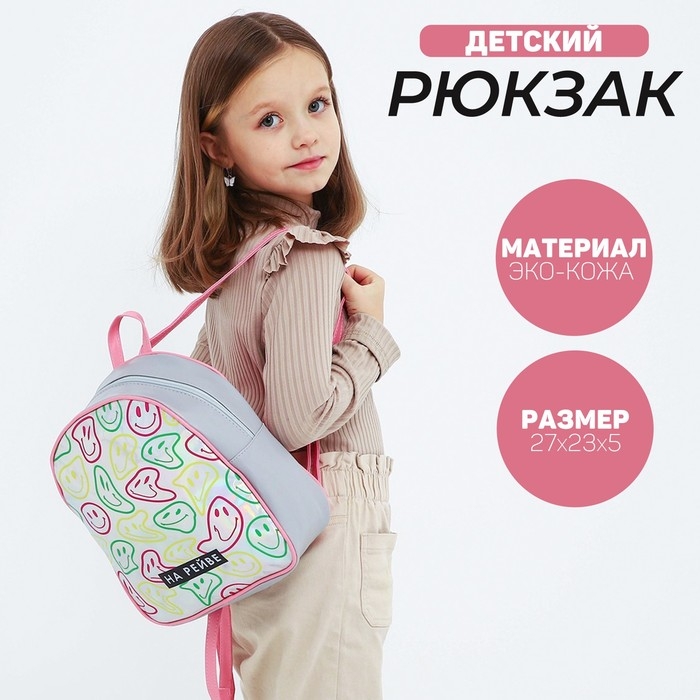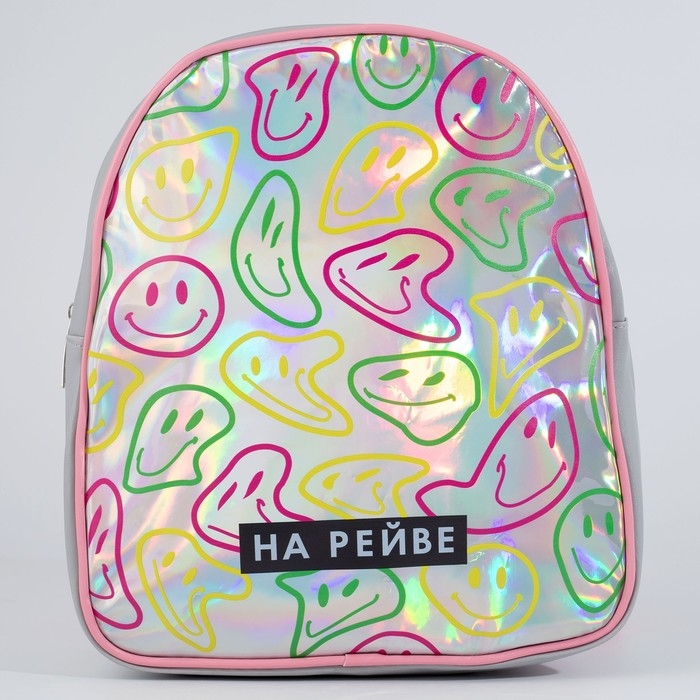 Рюкзак детский для девочки искусственная кожа, смайлы, голография, «НА РЕЙВЕ» 27х23 х 10 см