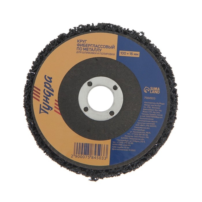 Круг фиберглассовый по металлу ТУНДРА, для шлифовки и полировки, 100 х 16 мм