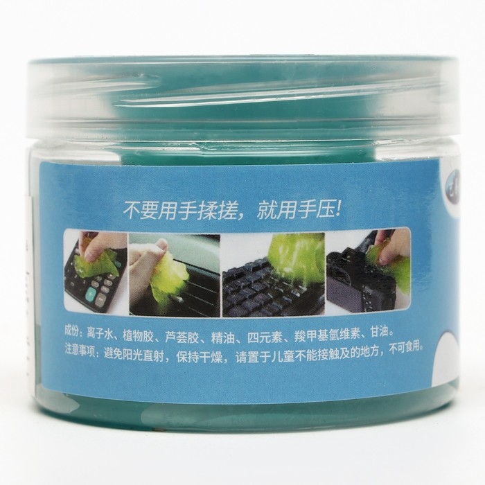 Изготовлен из биоразлагаемого материала, не липнет к рукам и не раздражает кожу. Для использования необходимо раскатать желе в руках в течение 30 секунд, после медленно вдавить чистящее средство на нужную поверхность, пройтись по области, пыль и грязь удалятся чистящим желе. Использовать можно длительное время, пока желе не приобретет тёмный оттенок.