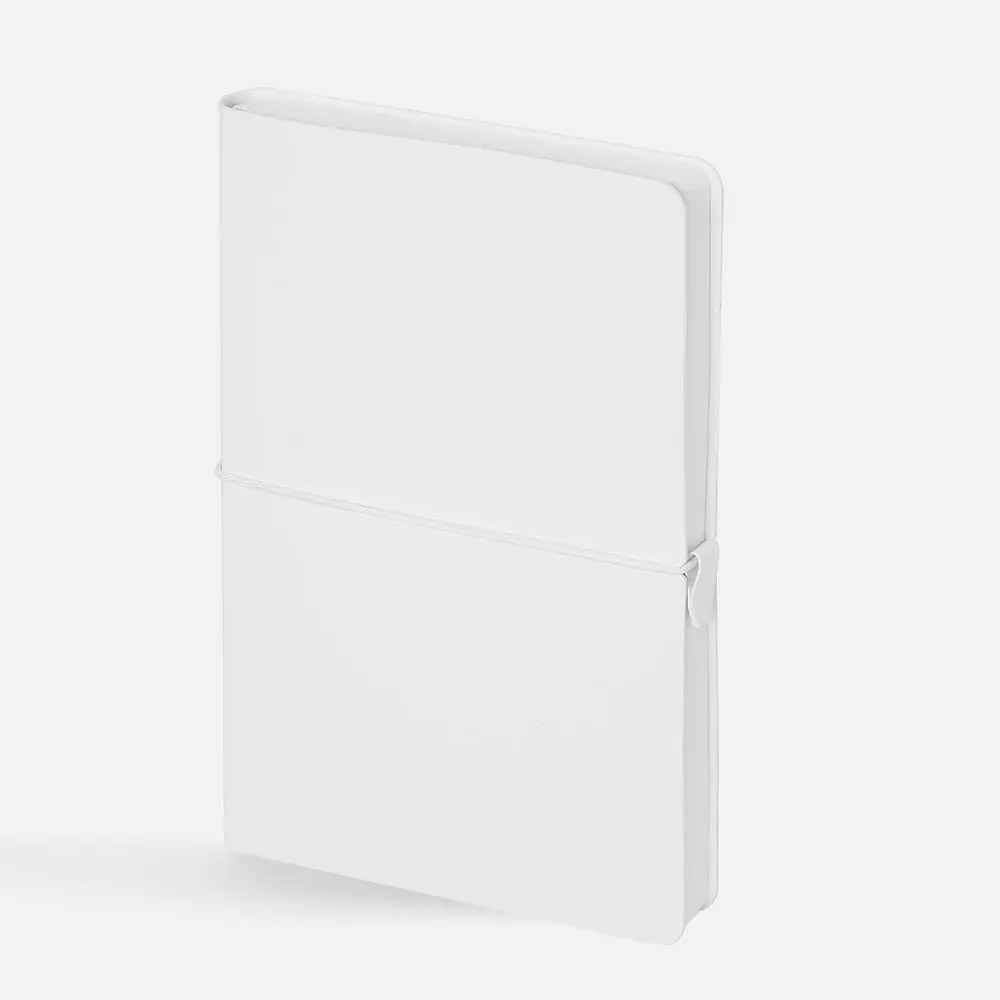 Ежедневник с гибкой обложкой, выполнен из материала Waltz, белый BB, дополнен ляссе в цвет обложки с металлическим шильдом.