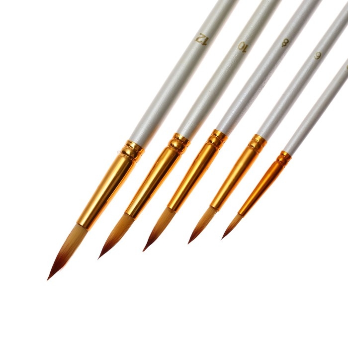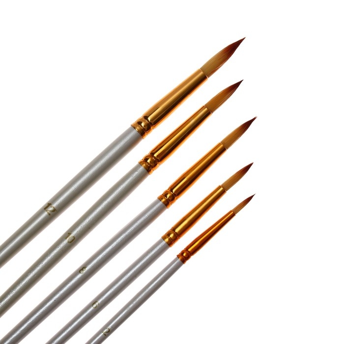 Набор кистей синтетика, 5 штук (№2,6,8,10,12), круглые, в блистере