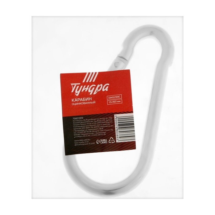 Карабин ТУНДРА krep изготовлен из высококачественного металлас оцинкованным покрытием, что защищает его от коррозии.