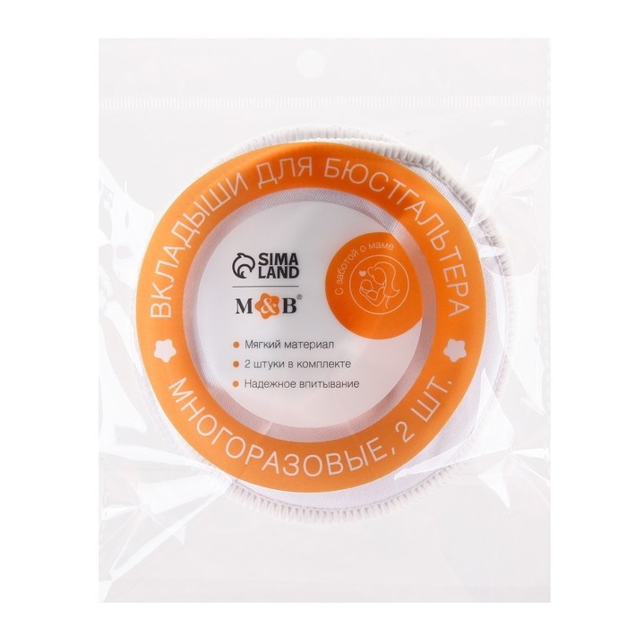 Вкладыши для груди, многоразовые, набор 2 шт., цвет белый, M&B