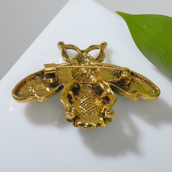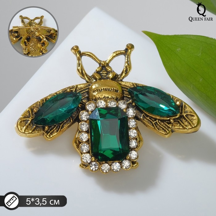 Брошь «Жук» с крыльями, цвет бело-изумрудный в чернёном золоте