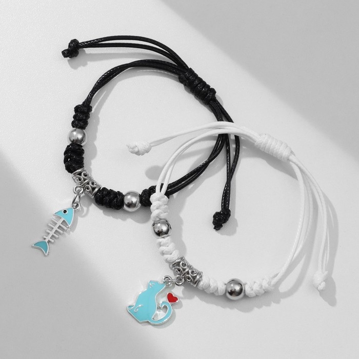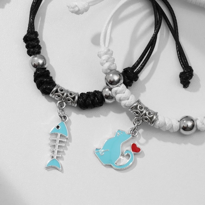 Браслеты «Неразлучники» кот с рыбкой, цветные, 7 см