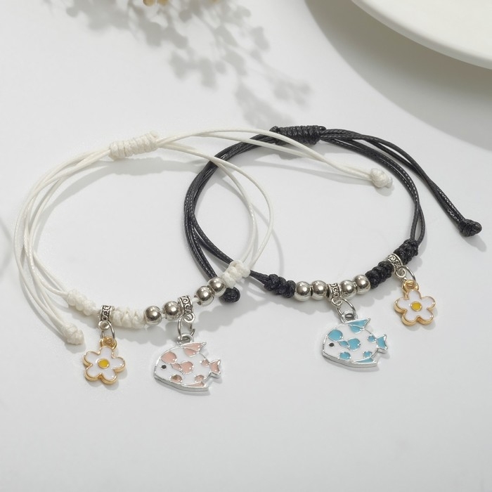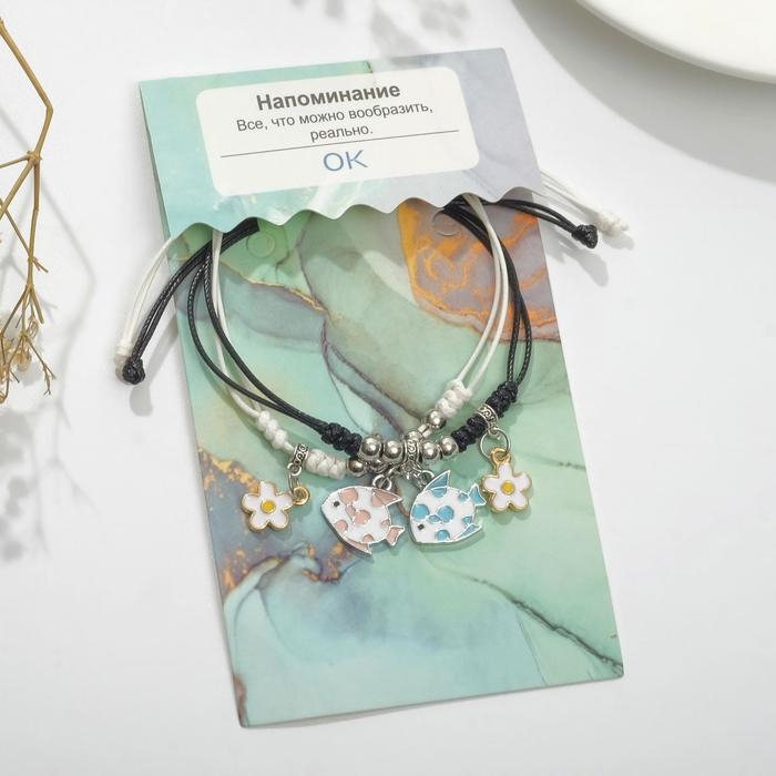 Браслеты «Неразлучники» рыбки с ромашками, цветные, 7 см