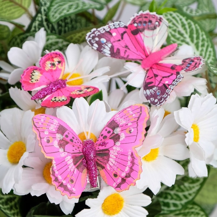 Бабочка для декора и флористики, на прищепке, пластиковая, микс, 1 шт., 4 см и 8 см