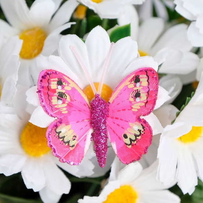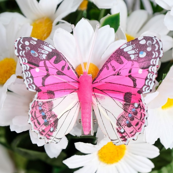 Бабочка для декора и флористики, на прищепке, пластиковая, микс, 1 шт., 7,5 х 5 х 1 см