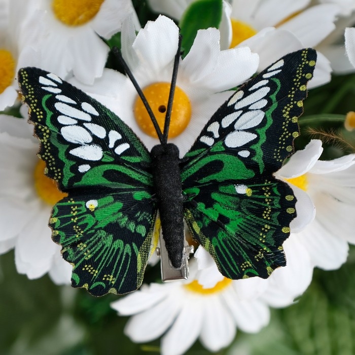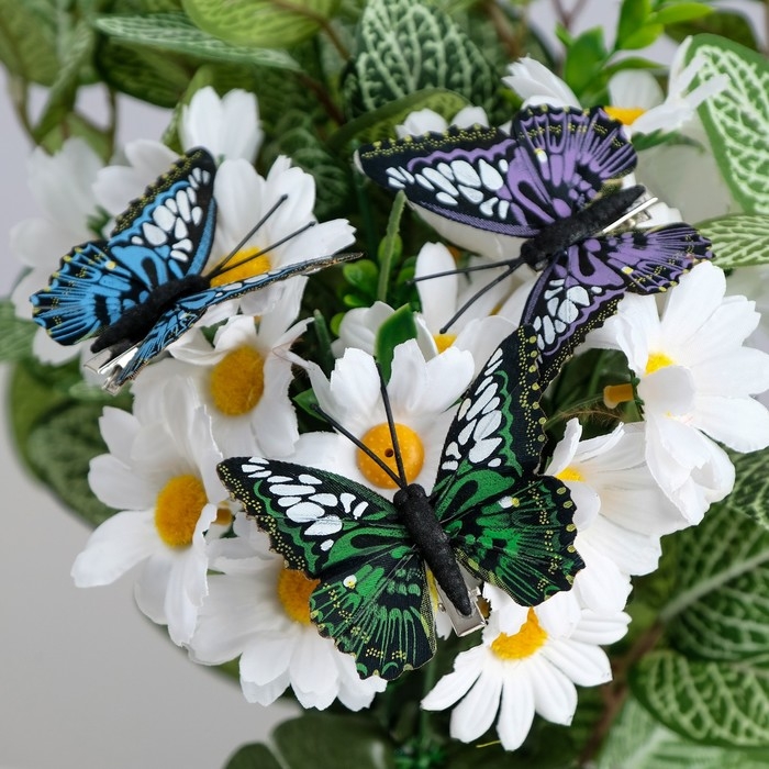 Бабочка для декора и флористики, на прищепке, пластиковая, микс, 1 шт., 7,5 х 5 х 1 см