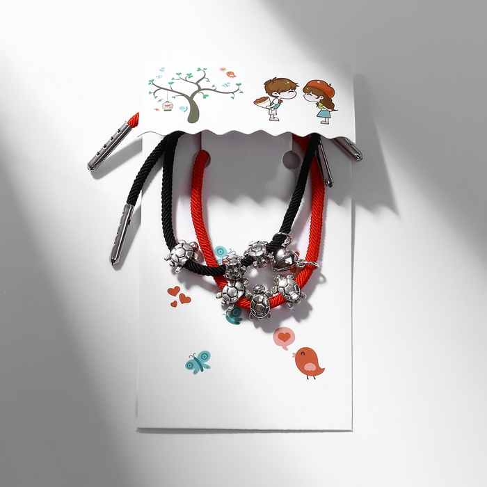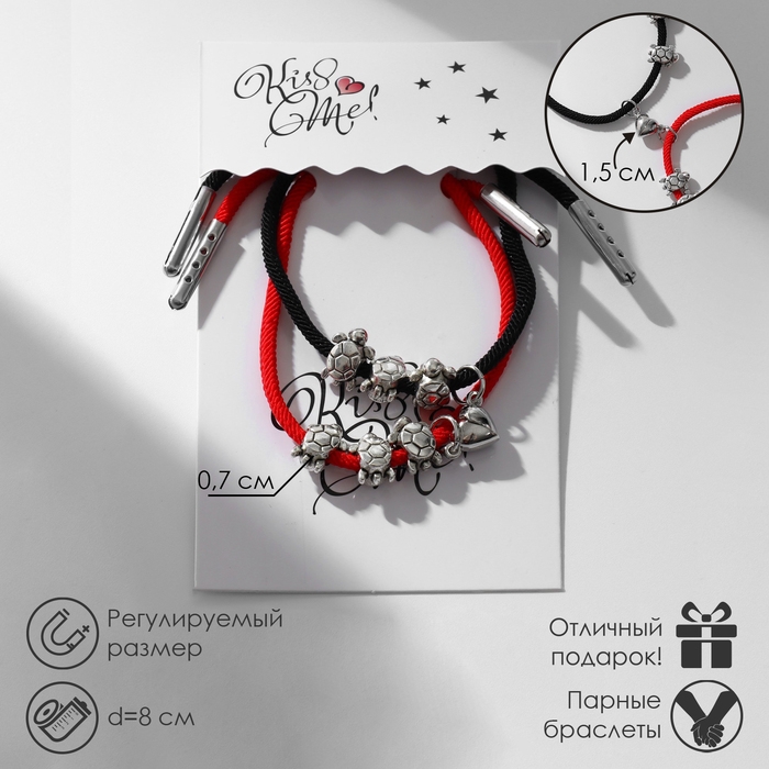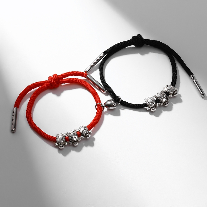 Браслеты «Неразлучники» на магните, три черепашки, цвет чёрно-красный, 8 см